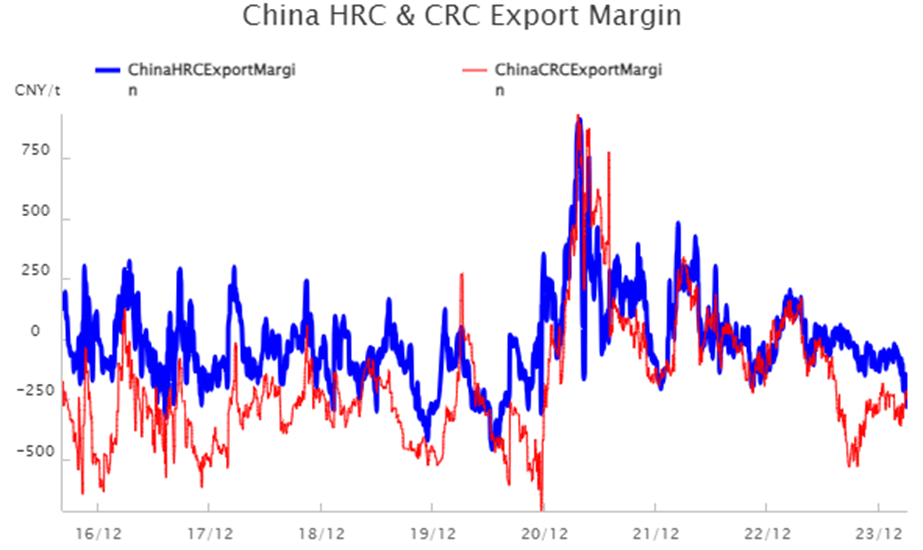 1. Exports have not improved and remain under pressure as export margins continue to ease. Billet demand is better as it is used for financial trades such as basis, non-standard hedging, etc.