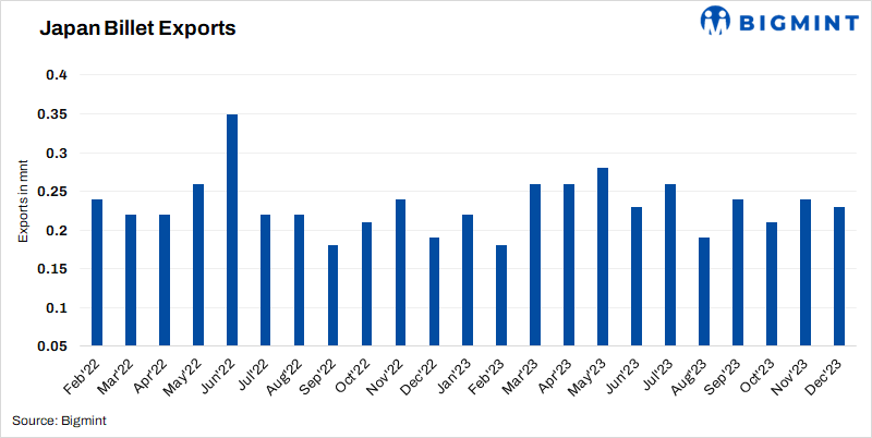 Japan: Billet exports remain largely stable y-o-y in CY’23
