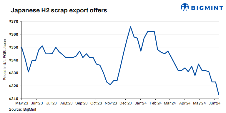Japan: H2 scrap export offers decrease by $5/t, marking third weekly decline