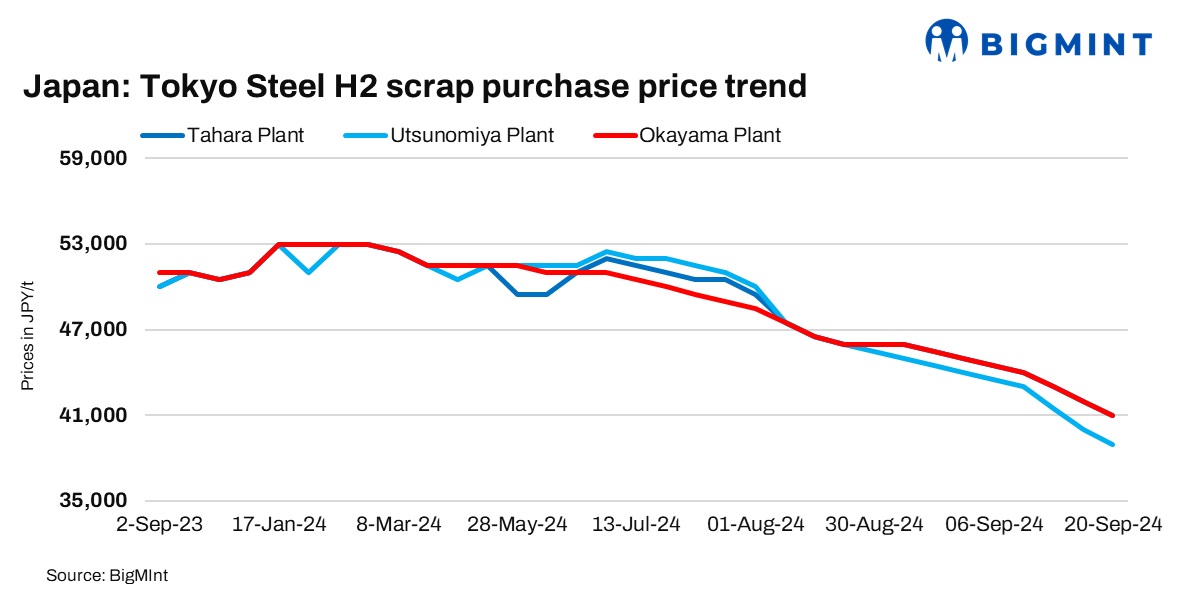 Japan’s Tokyo Steel announced its eighth consecutive cut in domestic scrap procurement prices today, reducing rates by up to JPY 1,500/t ($10/t), effective 21 Sep’24.