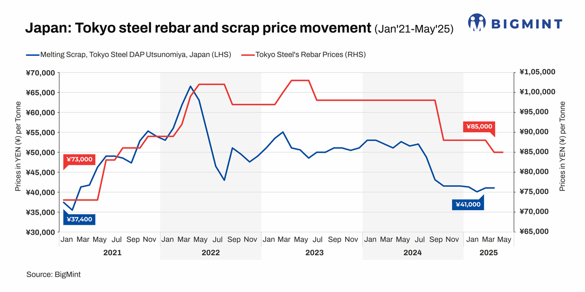 1. Kanto scrap export tender sees drop in bids: The Kanto Iron and Steel Cooperative’s scrap export tender in April saw bids fall by JPY 938/t m-o-m ($7/t). A 15,000-t H2 lot was sold at JPY 43,288/t ($308/t) FAS. This price reduction is attributed to subdued export demand, as buyers maintained downward pressure on prices amid limited consumption and unfavourable macroeconomic conditions.