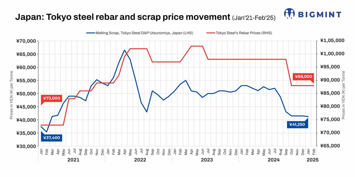 Tokyo Steel, Japan’s leading electric arc furnace (EAF) steel manufacturer, has kept prices of hot-rolled coils (HRCs) (1.7-22 mm) stable for February 2025 shipments compared to the previous month. Additionally, the company rolled over prices of rebars and H-beams for the same period.