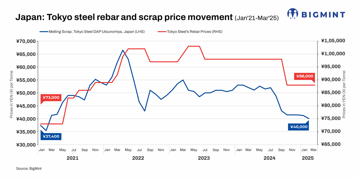Tokyo Steel, Japan’s leading electric arc furnace (EAF) steel manufacturer, has kept tags of hot-rolled coils (HRCs) (1.7-22 mm) flat for March 2025 sales, the fifth consecutive month of price stability. Additionally, the company rolled over prices of rebars and H-beams.