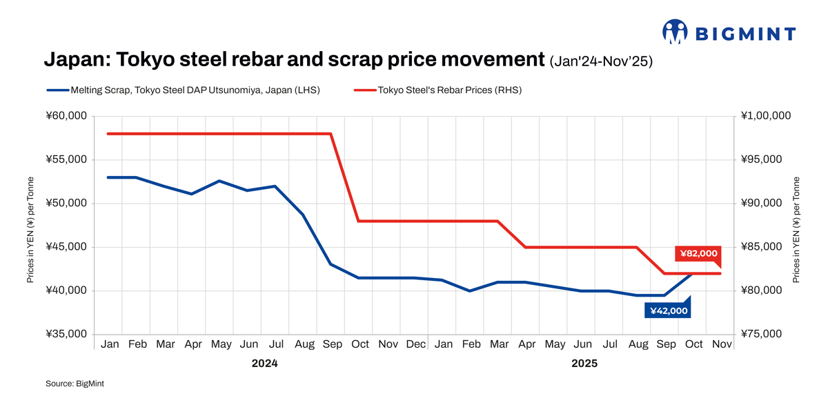 Tokyo Steel, Japan’s leading electric arc furnace (EAF) steel manufacturer, has kept prices of hot-rolled coils (HRCs) (1.7-22 mm) stable for November 2025 shipments compared to the previous month. Additionally, the company rolled over prices of rebars and H-beams for the same period.