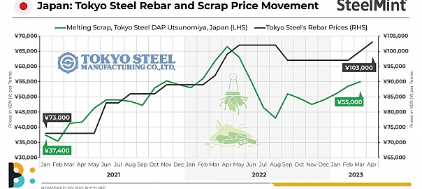 Japan’s top electric arc furnace steelmaker, Tokyo Steel, has decided to increase its rebar and H-beam prices for April 2023 sales, as per the latest prices announced today. However, the company has kept its HRC prices unchanged.