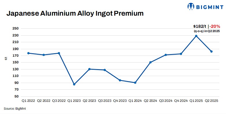 The aluminium premium for Japanese shipments from April to June (Q2’25) has dropped to $182/t, a 20% decrease from the current quarter, reflecting weak domestic demand. This marks the first quarterly decline in five quarters, down from $228/t in January to March 2025. However, it remains below initial offers from global producers, which ranged from $245/t to $260/t.