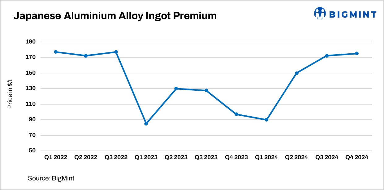 Some Japanese aluminium buyers have reportedly agreed to a shipment premium of $175/t over the LME benchmark price for the fourth quarter of 2024 which is 1.7% higher compared to the current quarter until 30 September and represents a third consecutive quarterly increase and the highest since the Jan-Mar quarter in 2022 on supply concerns amid higher premiums in Europe.