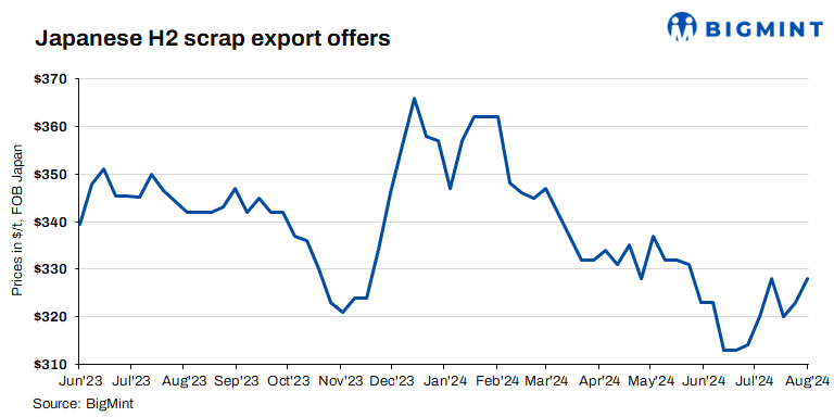 Japanese H2 scrap export offers drop further by JPY 1,100/t ($7/t) w-o-w
