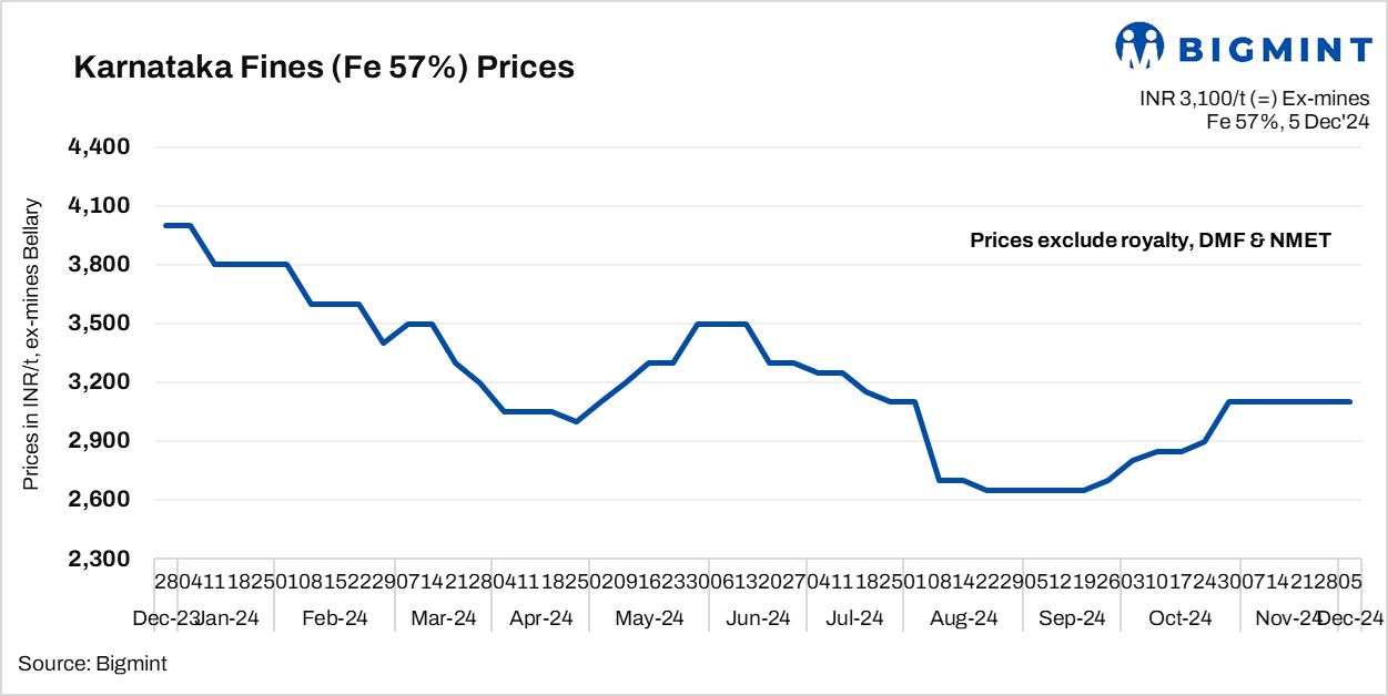 Meanwhile, the recovering sponge iron (CDRI) market in Bellary has also provided support to low-grade iron ore prices. Sponge iron prices in Bellary increased by INR 200/t ($2/t) w-o-w on 5 December, driven by market volatility and prevailing trends in neighbouring markets.