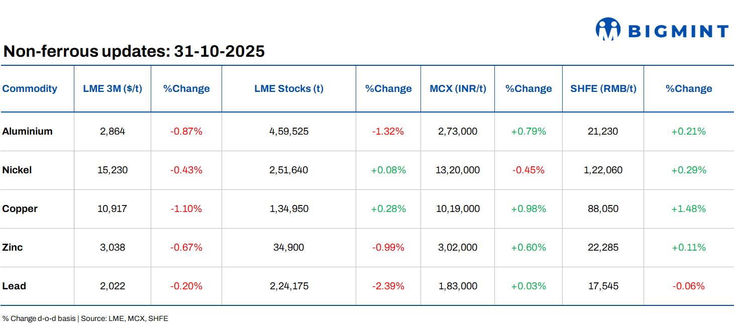 Base metals prices on the London Metal Exchange (LME) inched down d-o-d, with copper decreasing by 1.10% to $10,917/tonne (t). Meanwhile, inventories at LME-registered warehouses registered negative movements, with lead recording the highest decline of 2.39%.