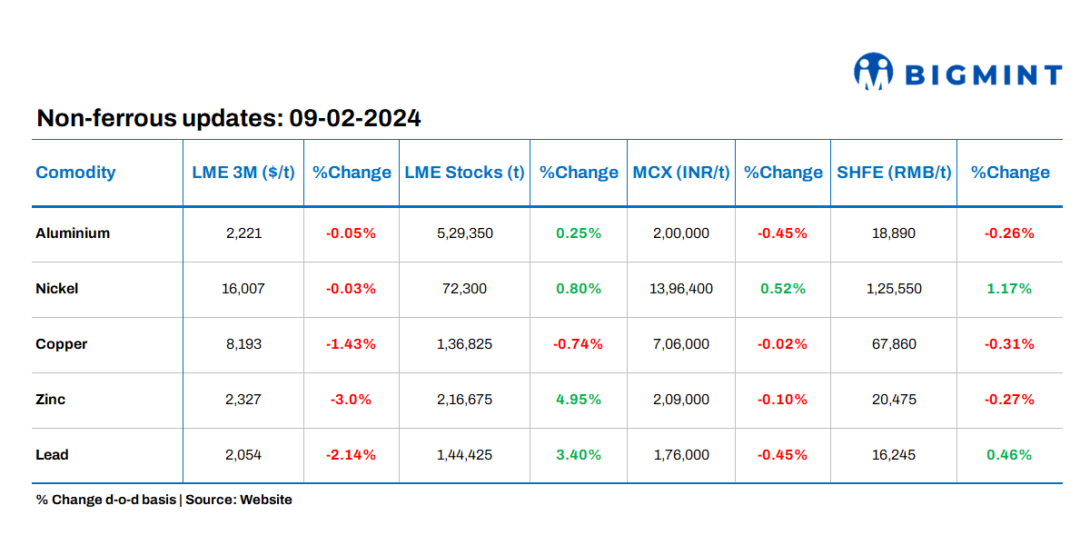 Notably, zinc stocks at LME registered warehouses witnessed an increase in inflow by over 4% to 216,675 t.