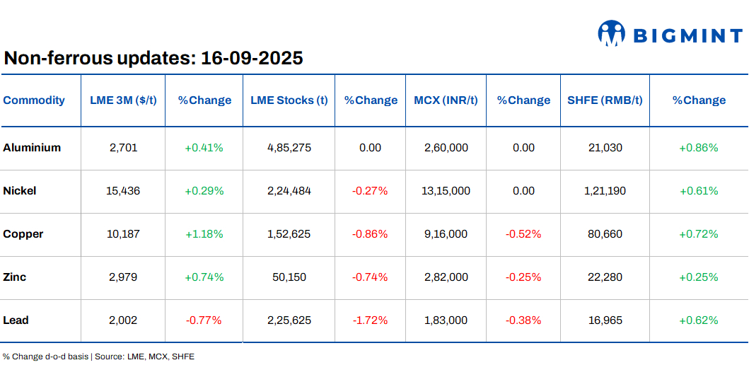 Copper surged to a 15-month high as investors grew optimistic about an impending US Federal Reserve rate cut, which is expected to boost demand and weaken the dollar, making commodities such as copper more attractive for global buyers. Futures on the LME climbed up by 1% to $10,173/t, marking the highest level since June 2024, amid broader risk-on sentiment and expectations of further easing by the end of the year.