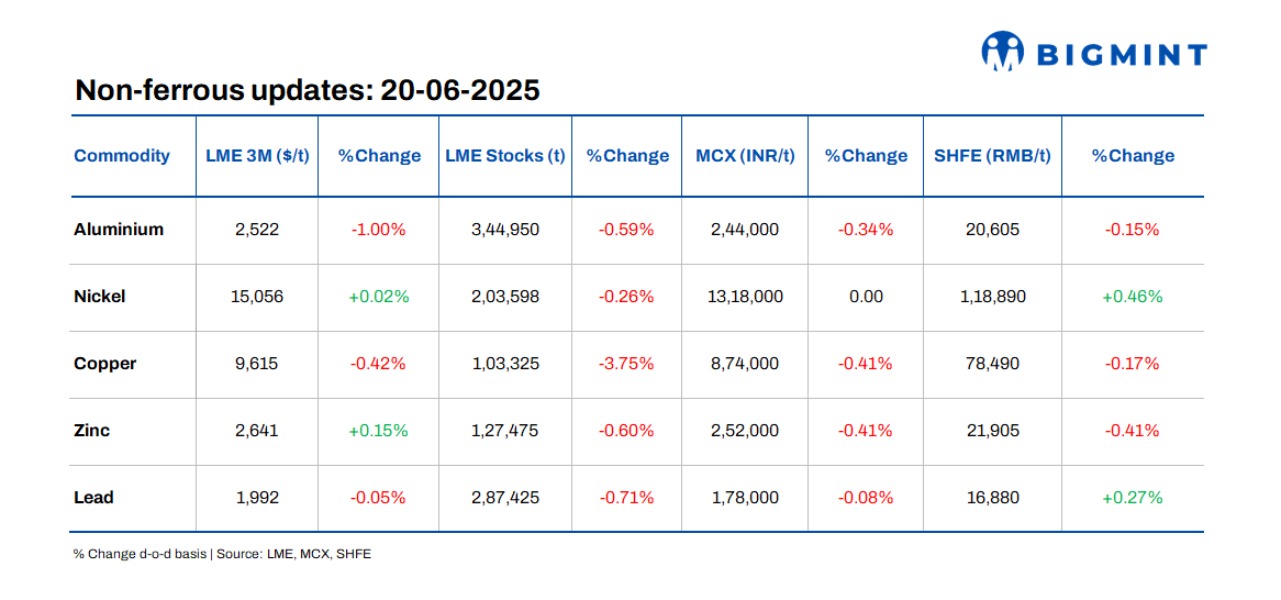 Base metals prices on the London Metal Exchange (LME) remained range-bound d-o-d, with aluminium decreasing by 1.00% to $2,552/tonne (t). Meanwhile, inventories at LME-registered warehouses saw negative trends d-o-d, with copper recording the highest decline of 3.75%.