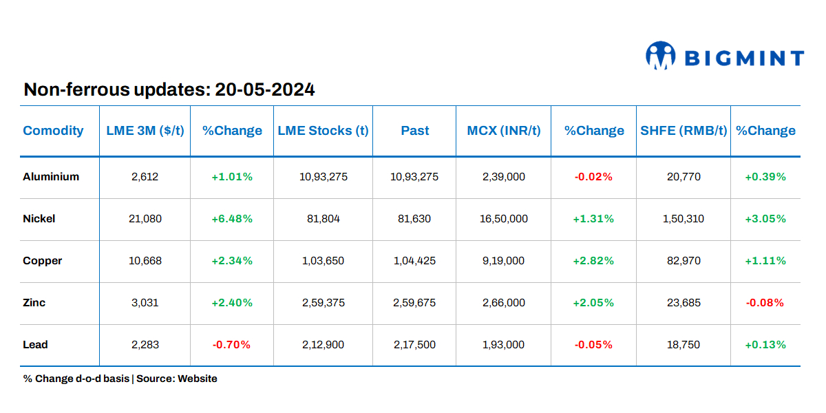 LME base metals prices remain positive except lead; nickel gains over 6%