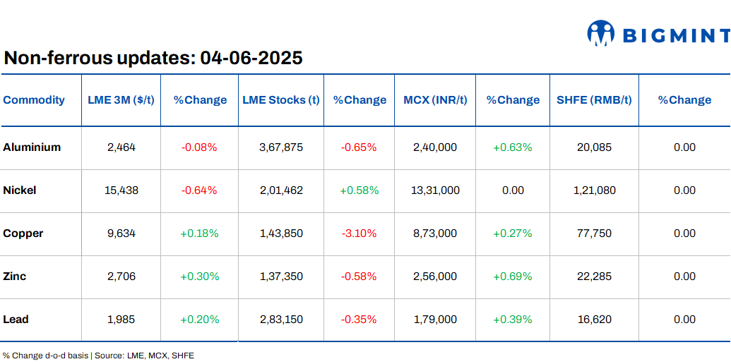 Base metals prices on the London Metal Exchange (LME) remained range-bound d-o-d, with nickel dropping by 0.64% to $15,438/tonne (t). Meanwhile, inventories at LME-registered warehouses dropped d-o-d, with copper recording the steepest fall of 3.10%.