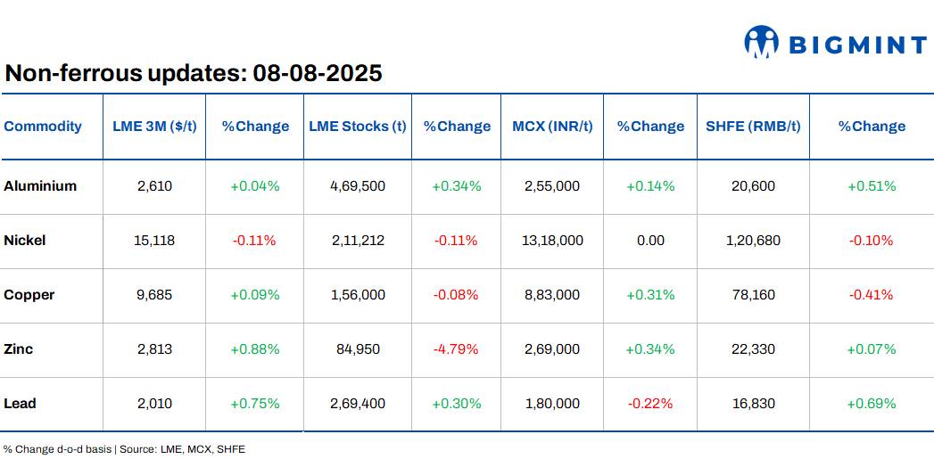 LME base metals prices see positive trends d-o-d; US tariffs weigh on global oil sentiment
