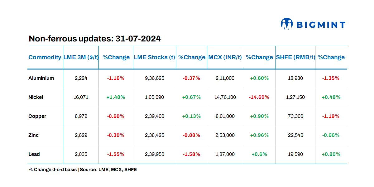 Base metals prices on the London Metal Exchange (LME) showed downtrends except nickel which was up by 1.48%. Meanwhile, metal stocks at LME-registered warehouses also showed mixed trends with the largest outflow seen in lead which fell by 1.58%.