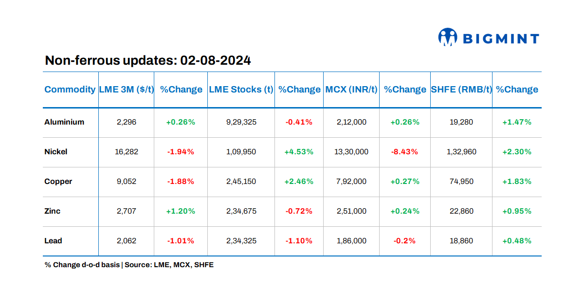 Base metals prices on the London Metal Exchange (LME) showed mixed trends, with zinc witnessing the largest increase of 1.20% and nickel witnessing largest decline of 1.94%. Meanwhile, metal stocks at LME-registered warehouses also showed mix trends. The largest outflow was seen in lead, which fell by 1.10% and significant inflow was seen in nickel, which was up by 4.53%.