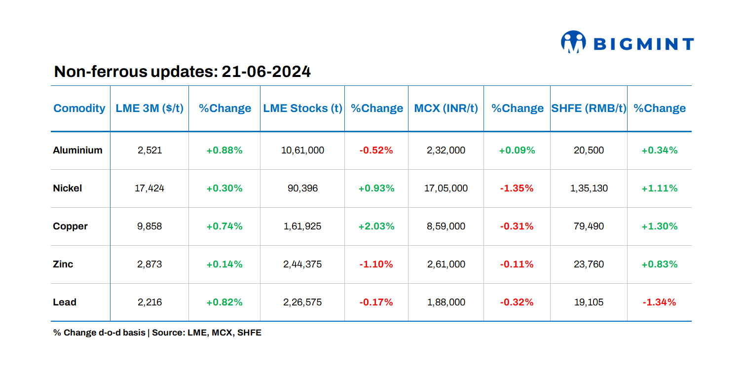 Base metals prices on the London Metal Exchange (LME) witnessed an uptrend. Similarly, metal stocks at LME-registered warehouses saw mixed movements with the highest inflow seen in copper.