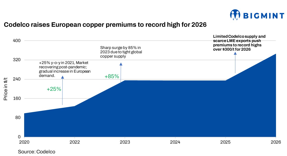 Looking ahead, Codelco’s European copper premium is expected to remain firm through 2026, supported by ongoing concentrate shortages, low smelter treatment charges (TC/RCs), and slow mine recovery in key producing nations like Chile and Peru. European buyers are likely to continue paying a higher physical premium to secure quality cathode amid structural energy costs and limited regional supply. While any easing in freight or macroeconomic weakness could slightly moderate premiums later in 2026, the market consensus points to a tight balance. Codelco’s latest offer of $325-345/t marks a new benchmark, signaling that physical copper tightness- not just LME price movement- will drive sentiment in the near term.