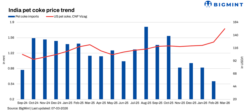 - Middle East conflict disrupts supply routes, pushing global pet coke prices higher