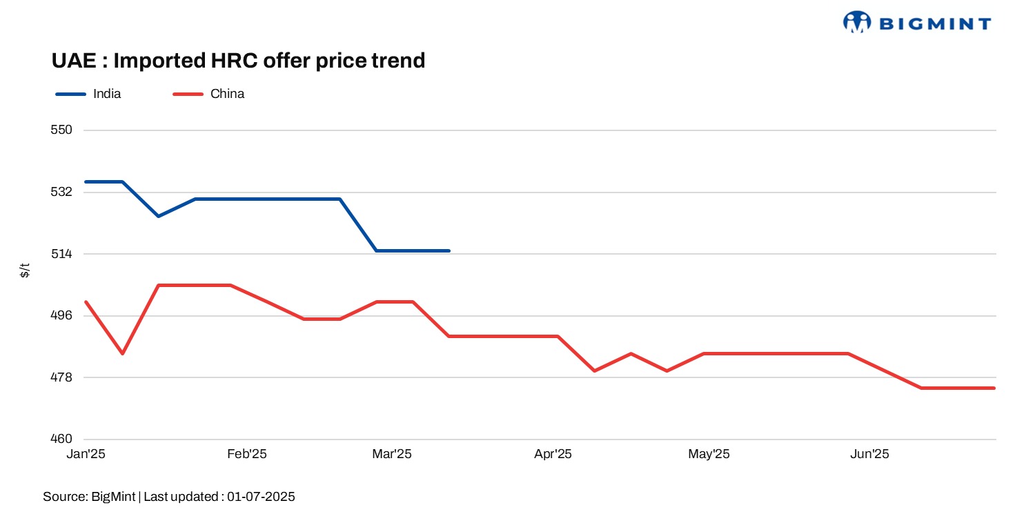 The Middle East’s imported HRC market is expected to remain under downward price pressure in the near term. This outlook is driven by buyers’ firm expectation of further price declines, largely fuelled by consistently competitive offers from China, Japan, and Russia.