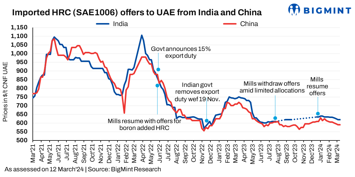 Indian HRC exports prospects to the Middle East are uncertain at this juncture. Weak demand in the ME due to the ongoing Ramadan month could lead to a decline in Indian HRC exports in the near future. This suggests Indian exporters may need to adjust their pricing or find other ways to attract buyers in the coming weeks.