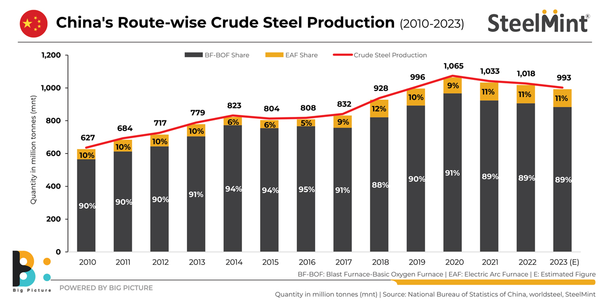 This downward trend in crude steel output continued last year, with the country posting a 2.1% on-year decline to total 1.01 billion tonnes, the NBS’s data showed.