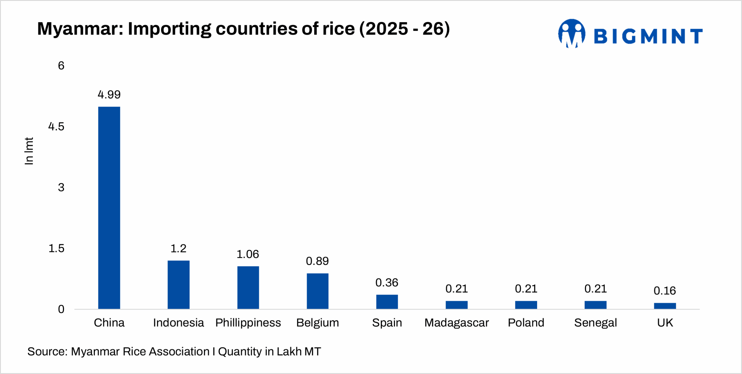 The Myanmar Rice Federation (MRF) has set an export target of 3 mnt for the current financial year, building on steady growth from the previous year. China remains the largest buyer of Myanmar rice, followed by Indonesia and the Philippines, while several European and African nations also feature among the top importers. Myanmar’s rice exports rely mainly on sea trade, with only limited volumes moving through border points.