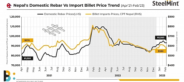 As power generation from the run-of-river-based powerhouses reduced due drop in water levels of rivers during the dry season. The Nepal Electricity Authority imposed power cuts for industrial use during morning and evening hours. Market participants reported lower steel capacity utilisation of around 60%. Despite this, rebar offers in the nation showed a downward correction since last week.