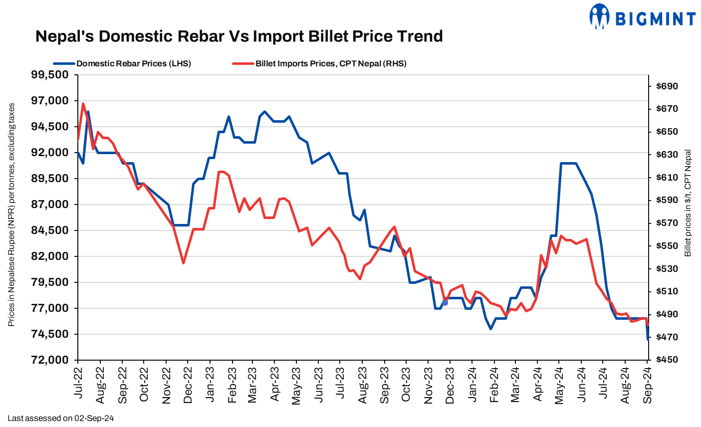 Nepal: Rebar offers fall by $15/t w-o-w