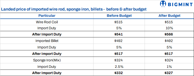 The import duty on WRCs was increased from 5% to 10%, a move aimed at protecting domestic rolling mills and encouraging local billet-to-WRC conversion. This will impact Indian exports to Nepal, resulting in a reduction in export volume. - Sponge iron