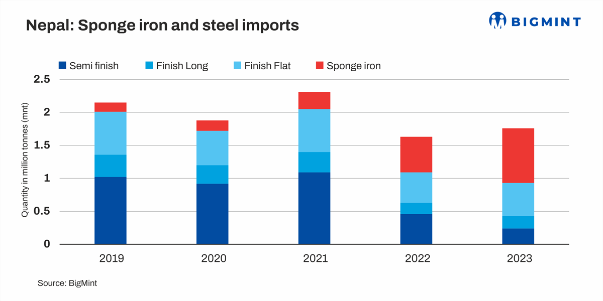 Nepal has historically relied on imports for its billet and finished steel needs, with annual import volumes exceeding 1 million tonnes (mnt). However, in recent years, the country has seen a significant increase in its domestic melting capacity, which now stands at 2.5 mnt per annum – up from less than 1 mnt just 3-4 years ago. This growth in capacity has been partly fueled by previous changes in the duty structure, which favored increased importation of sponge iron over billets.