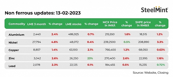Non-ferrous metals prices on all major exchanges were negative in the last trading session on 10 February, 2023. On the other hand, the US dollar marked near 83 again.