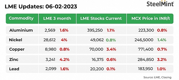 Non-ferrous metals prices on all major exchanges were negative in the last trading session on 3 February, 2023.