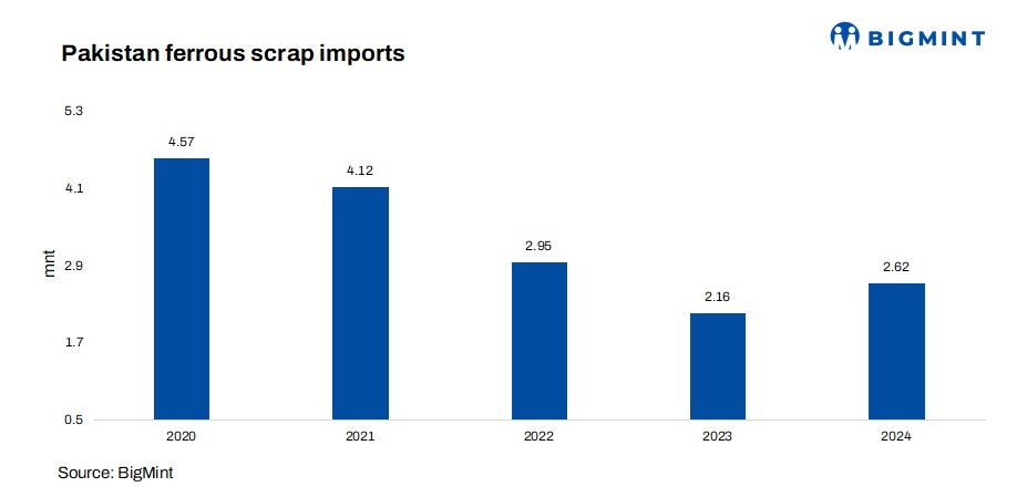 - Pakistan’s ferrous scrap imports recorded a notable growth of 21% y-o-y in CY’24, to 2.6 mnt from 2.1 mnt in CY’23.