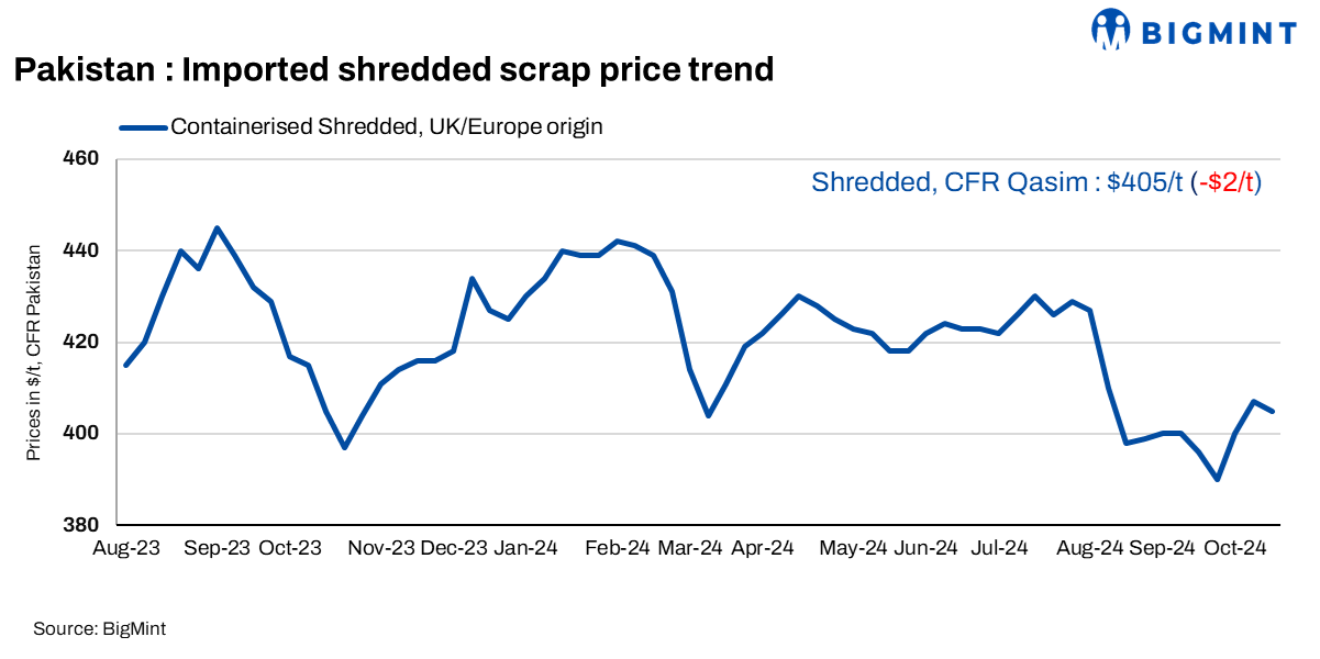 A major steel mill source from Karachi informed that everyone seems cash-strapped at the moment. UK shredded offers are around $400-403/t, while local scrap is priced at PKR 135-138,000/t and rebar at PKR 245,000/t. Although imported scrap is cheaper than domestic material, it costs PKR 10,000 to 12,000/t less, at around PKR 120,000/t. However, we still have to account for invoice costs of PKR 3,000 to 4,000 when purchasing locally. The main challenge is that demand for steel is virtually non-existent, leaving sellers desperate to offload at any price to meet their obligations.