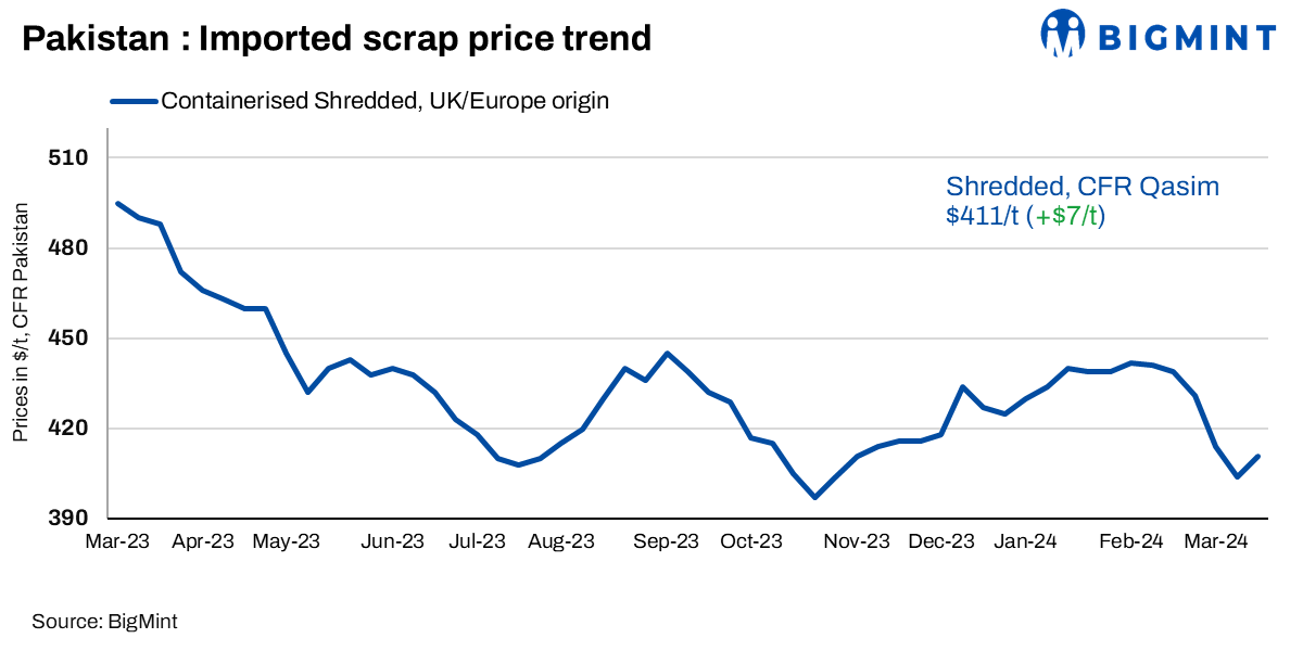 In the domestic market, the demand for rebars has faced pressure following the aftermath of elections in February and the onset of Ramadan in early March. Rebar prices were reported around PKR 245,000-255,000/t, with scraps at PKR 155,000-160,000/t and billets at PKR 218,000-225,000/t.