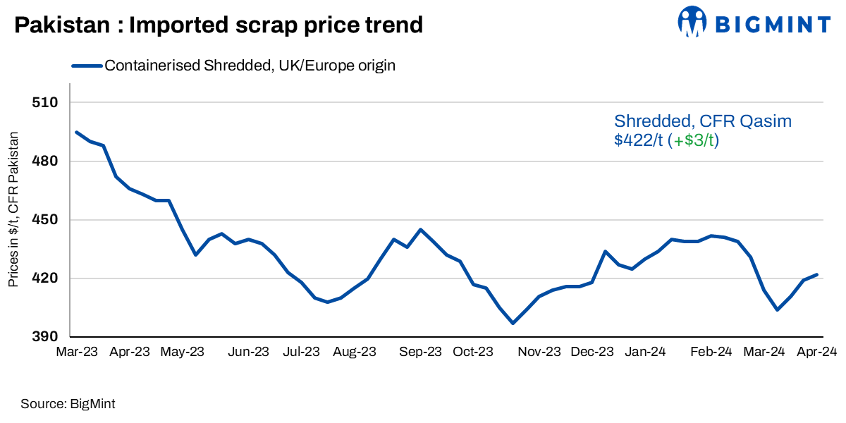 Imported ferrous scrap prices in Pakistan witnessed a slight uptick of $3/t compared to the previous week. This uptick is attributed to recent transactions at higher prices by Turkiye and firm offers from suppliers amidst decreased collection pace.