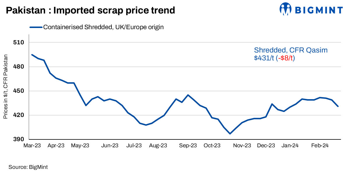 In Pakistan, market activity remained comparatively slow in terms of fresh imported scrap bookings amid weaker domestic rebar sales followed by liquidity issues for imported scrap buyers. Shredded scrap offers from Europe and the Middle East ranged between $430-438/t CFR Qasim.