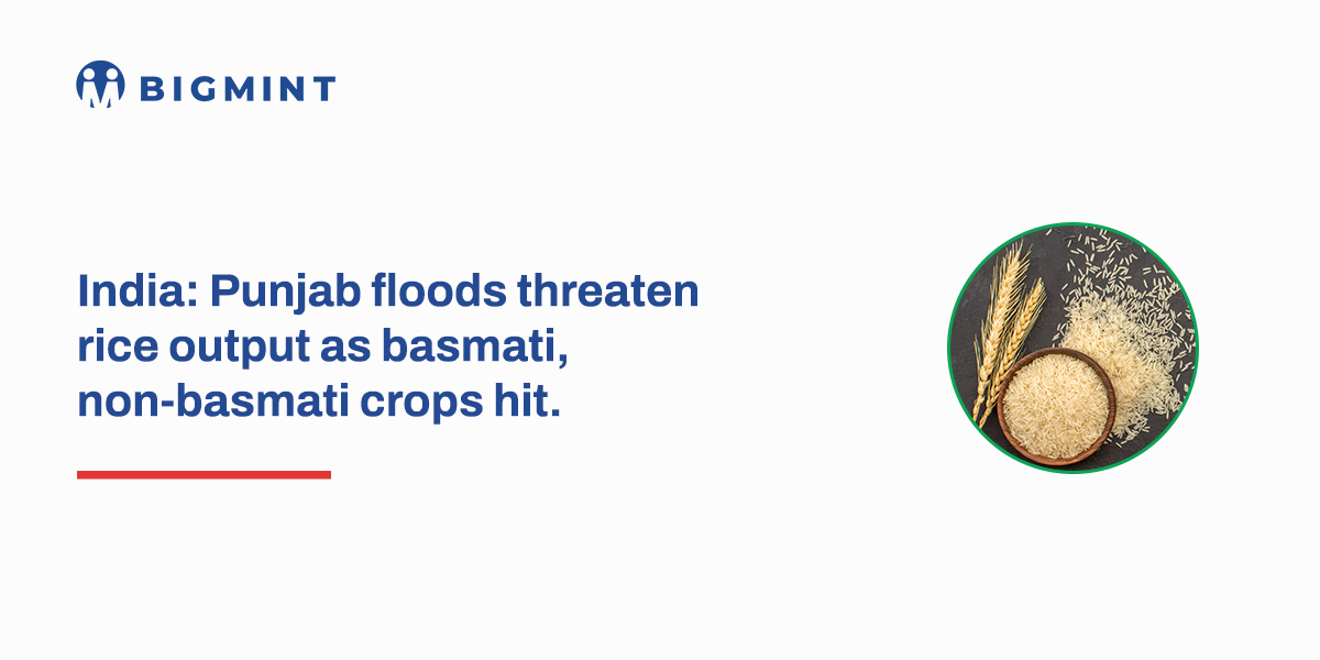 Severe floods across Punjab have inundated large tracts of farmland in India, damaging nearly 1.92 lakh hectares of standing crops. Early assessments indicate that paddy accounts for almost 85% of the crop losses, with basmati and non-basmati varieties equally exposed. Cotton fields have also been affected, but rice remains the hardest hit. According to the Indian Rice Exporters Federation, about 1.5 lakh acres of basmati and non-basmati rice are under stress, raising expectations of a 20-25% drop in basmati production this year.