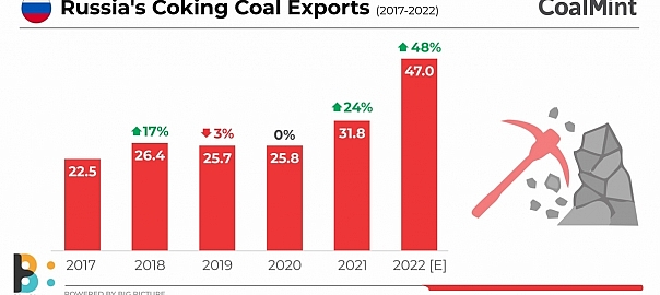 Russia’s seaborne exports of coking coal and PCI coal are estimated to have increased by a sharp 48% y-o-y to 47 million tonnes (mnt) in 2022 from around 32 mnt in 2021, as per provisional data maintained with CoalMint. Although sanctions on Russia cut off seaborne supplies to traditional importers such as the EU, Japan and South Korea, increased exports to China and India contributed to the growth in export volumes.
