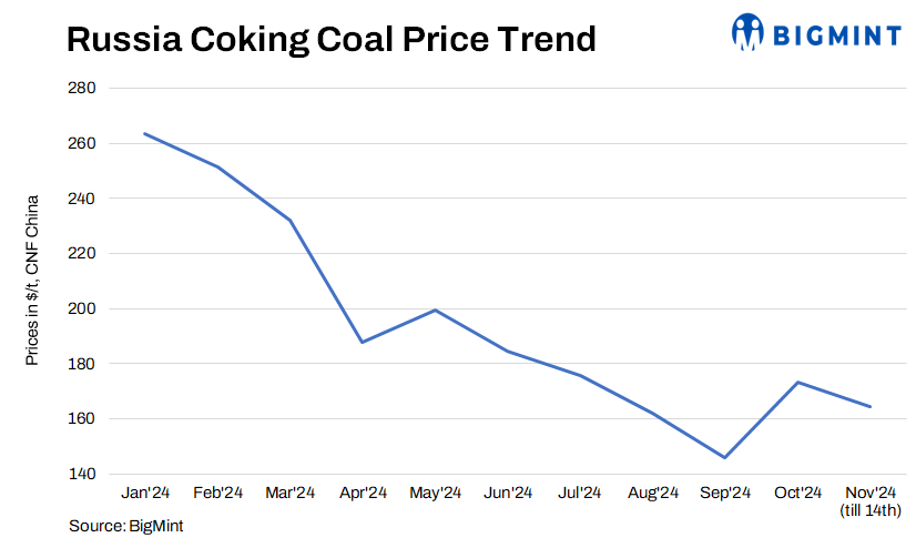 Trading activity at Chinese ports for spot Russian and Australian coking coal remains muted at present, as production cuts among Chinese steel mills, struggling with falling steel prices, have dampened demand, the report noted. With limited enthusiasm being generated by the government’s stimulus measures, market sentiment remains weak, especially as winter is the off-season for ferrous commodities in China.