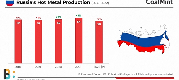 The war with Ukraine took a toll on Russia’s steel production as well as exports. Data show that hot metal production in 2022 decreased by over 7% y-o-y to 50 mnt from 54 mnt in 2021. This left Russian miners with higher volumes for exports.