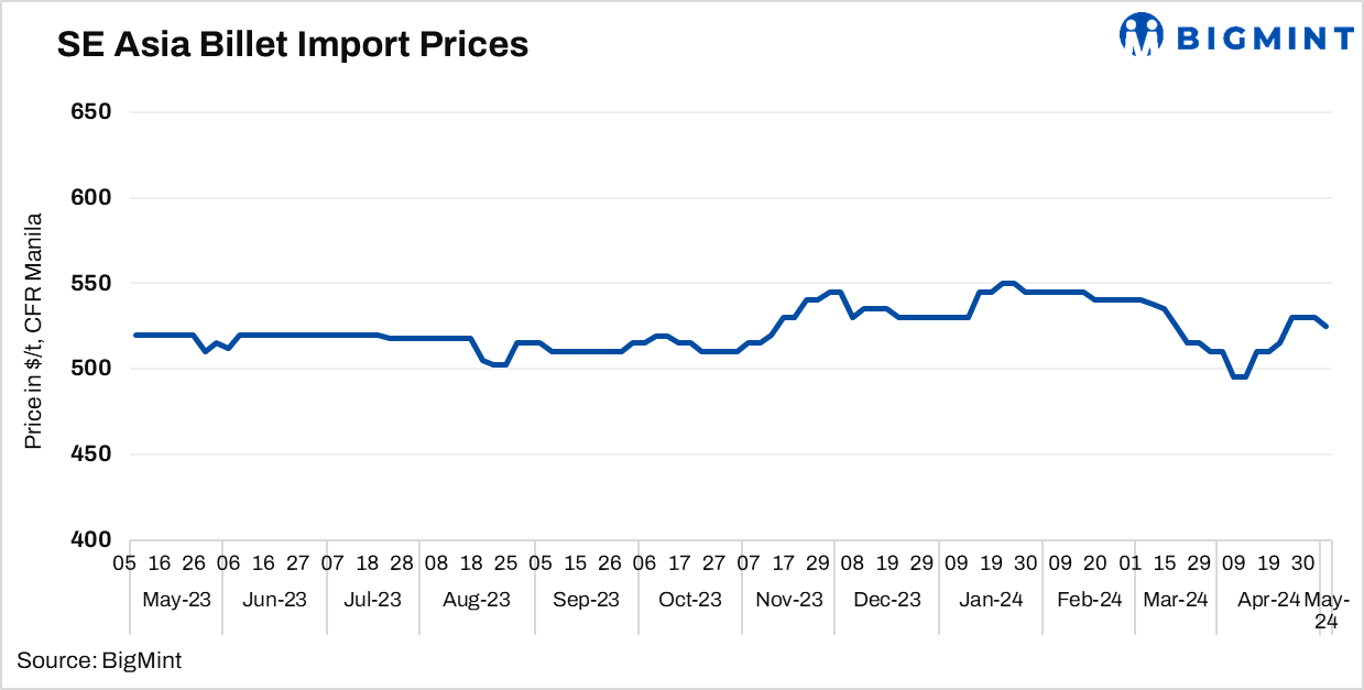 According to sources, billet import offers have dropped by $7-8/t w-o-w to $525/t CFR Manila.