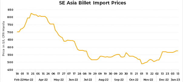 • Vietnam’s sellers hold back export offers: Vietnam’s BF-grade billet export market has been mostly quiet this week as they are largely sold out for March shipments. Steel market sentiments are mainly subdued ahead of the Tet and Lunar New Year holidays which will last nine days starting from 20 January, 2023. Vietnamese steelmakers are likely to remain out of the market this month and may resume activities only after the holidays.