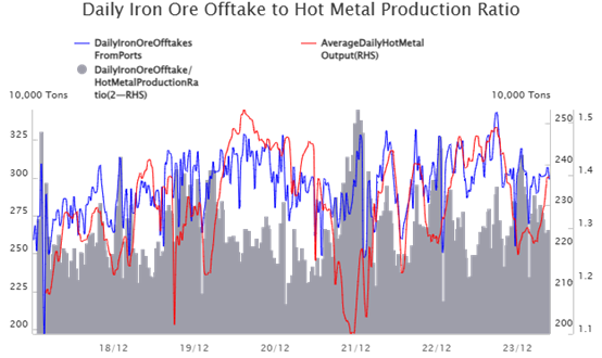 For the recent decrease in the ratio of offtaking volume to molten iron, it reflects the steel mills’ lack of active replenishment sentiment.
