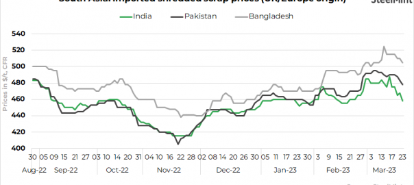 - UK-origin shredded scrap prices in Bangladesh stood at $505/t CFR Chattogram, down by $5/t from last offers.