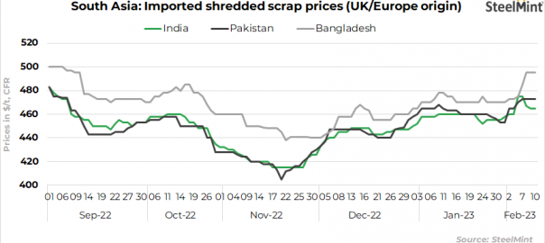- UK-origin shredded scrap prices stood at $495/t CFR Chittagong, unchanged d-o-d.
