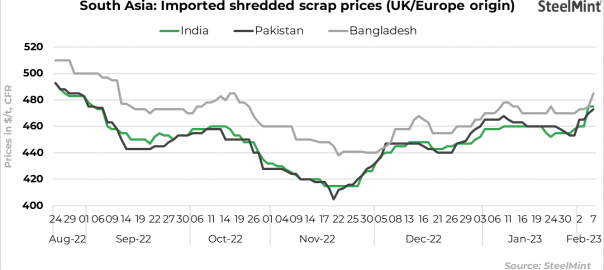 • UK-origin shredded scrap prices stood at $485/t CFR Chittagong, up by $10/t compared to previous offers.